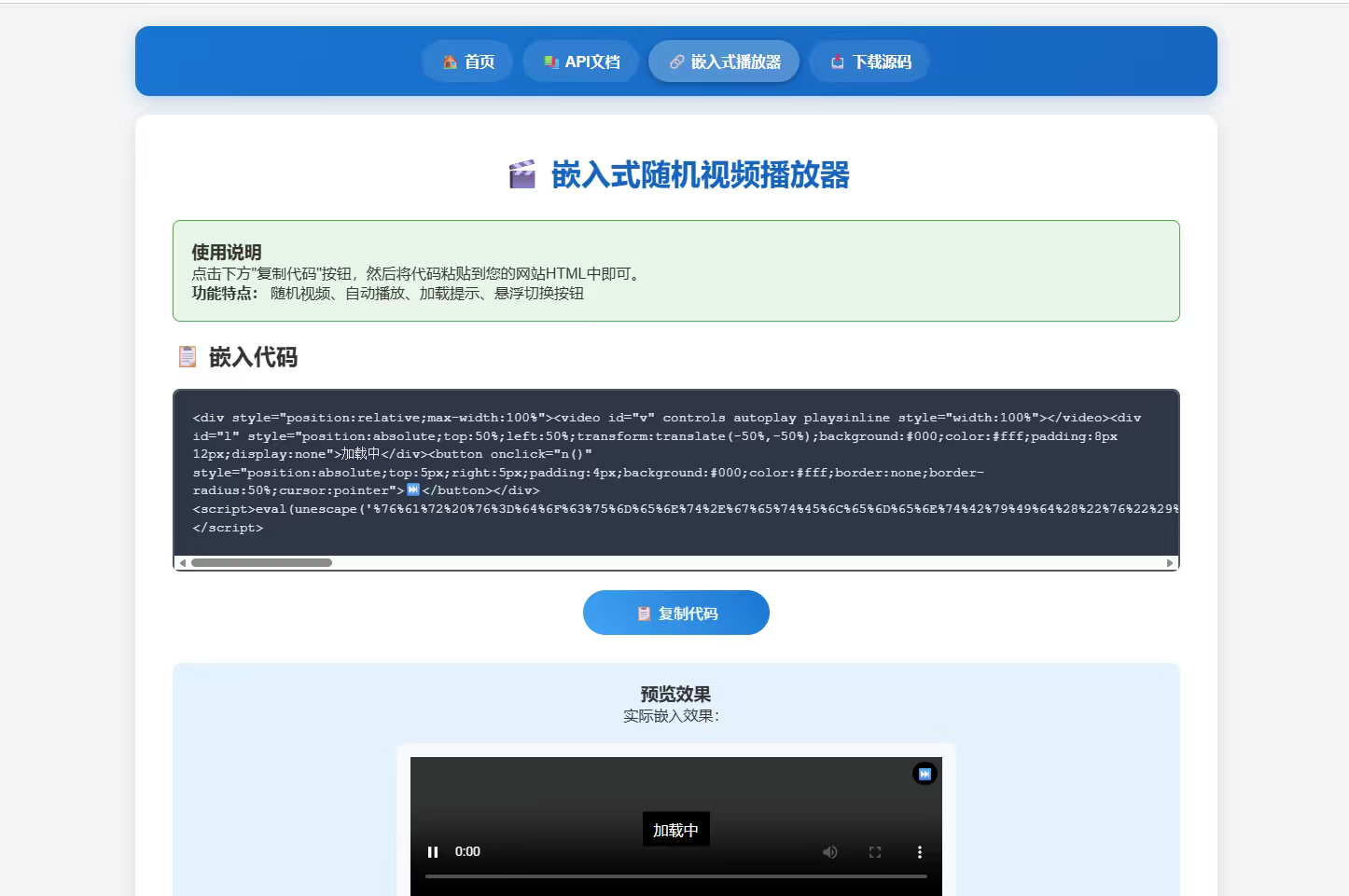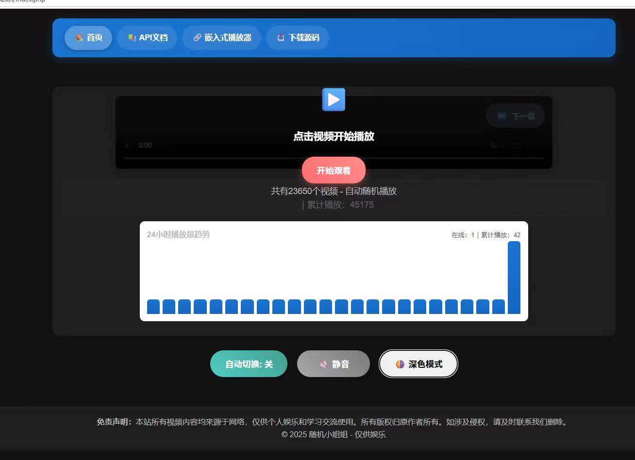 6.加入嵌入式播放代码功能,在线播放统计,在线人数等