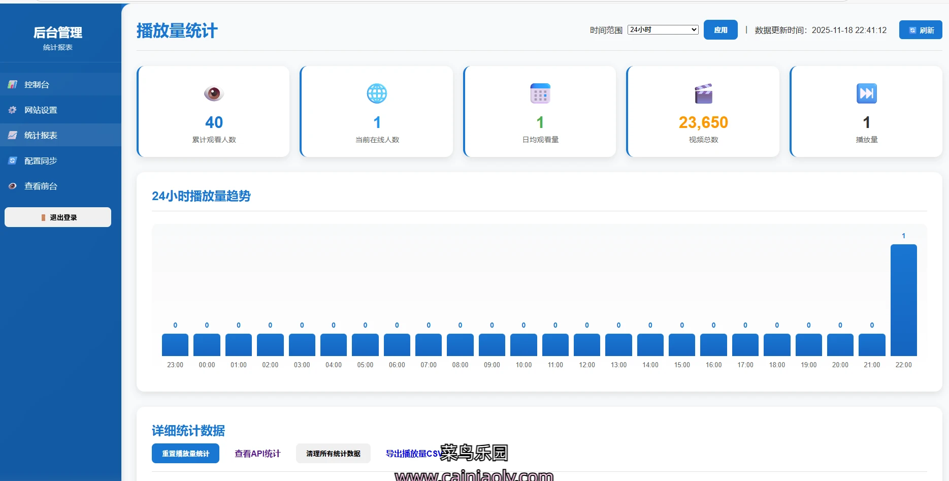 4.后台统计报表重构版,支持24小时/7天/30天统计播放量