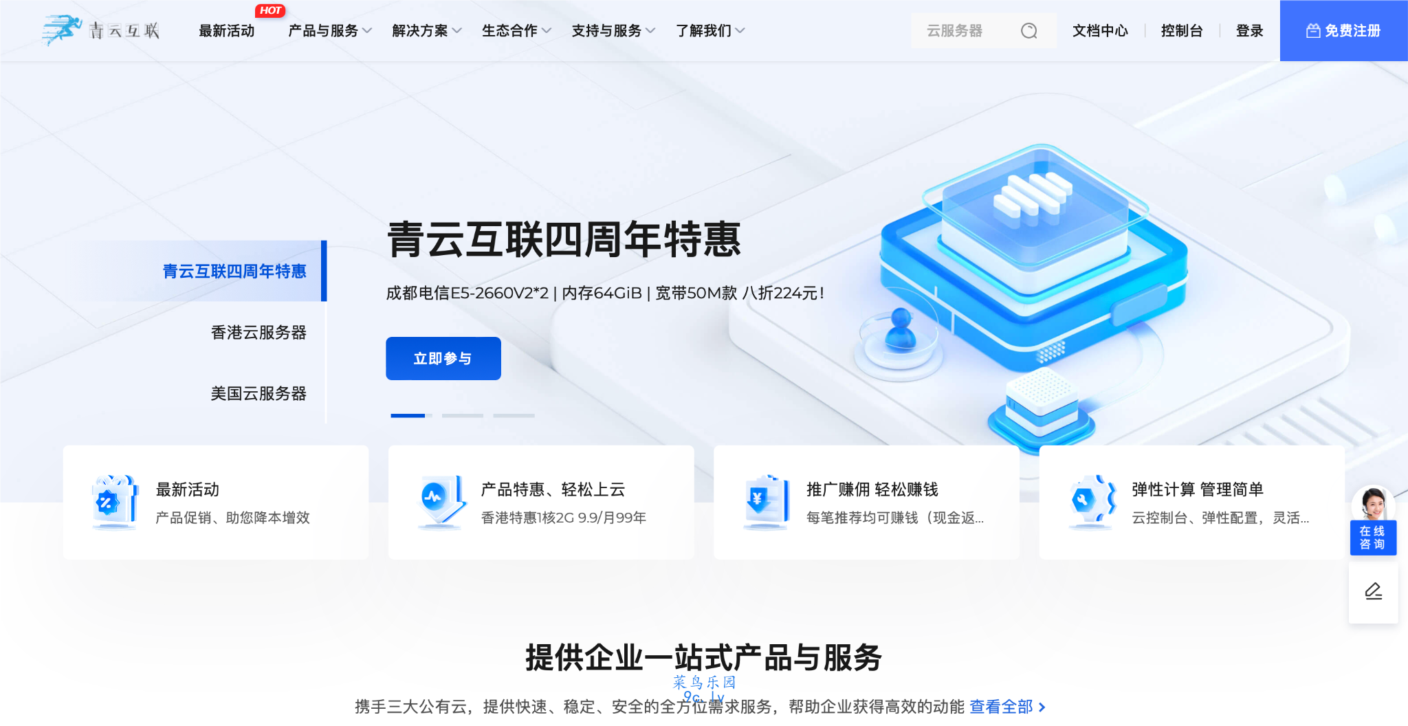 青云互联怎么样?青云互联是一家成立于2020年的主机服务商,致力于为用户提供高性价比稳定快速的主机托管服务,目前提供有美国免费主机、香港主机、韩国服务器、香港服务器、美国云服务器,让您的网站高速、稳定运行。