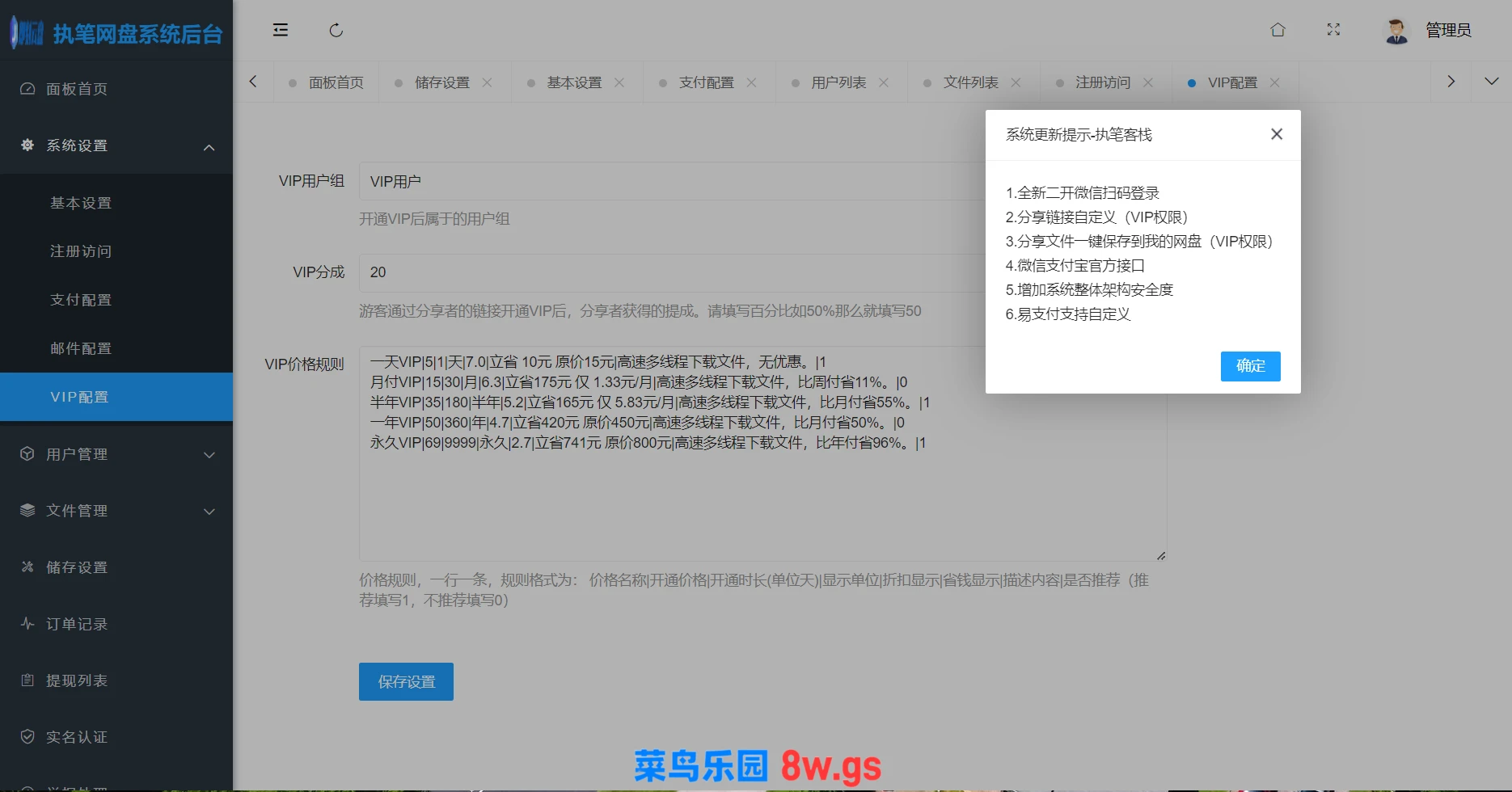 新运营级限速网盘系统网站源码是一款非常实用的系统,可以帮助您打造一个安全可靠的网盘分享平台。该系统支持用户使用微信扫码登录,上传文件分享链接可自定义,文件可一键保存到我的网盘。此外,该系统还支持微信和支付宝官方接口,支付接口不强制且可自定义。