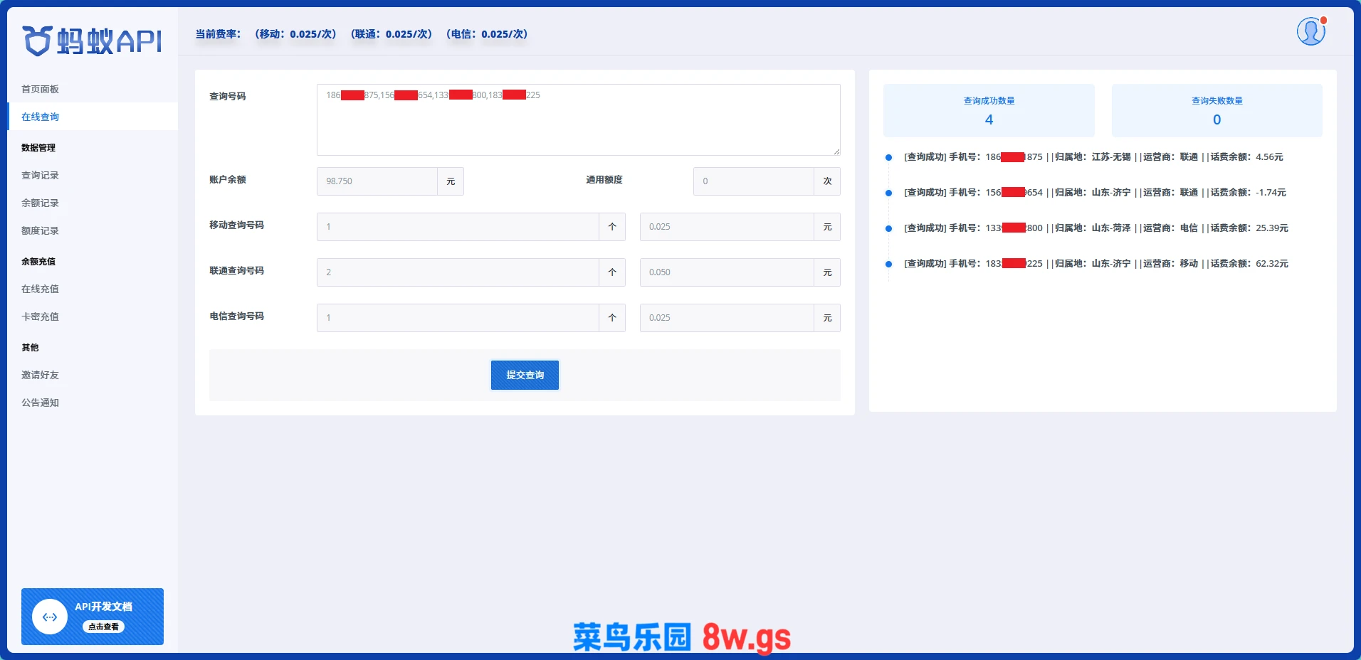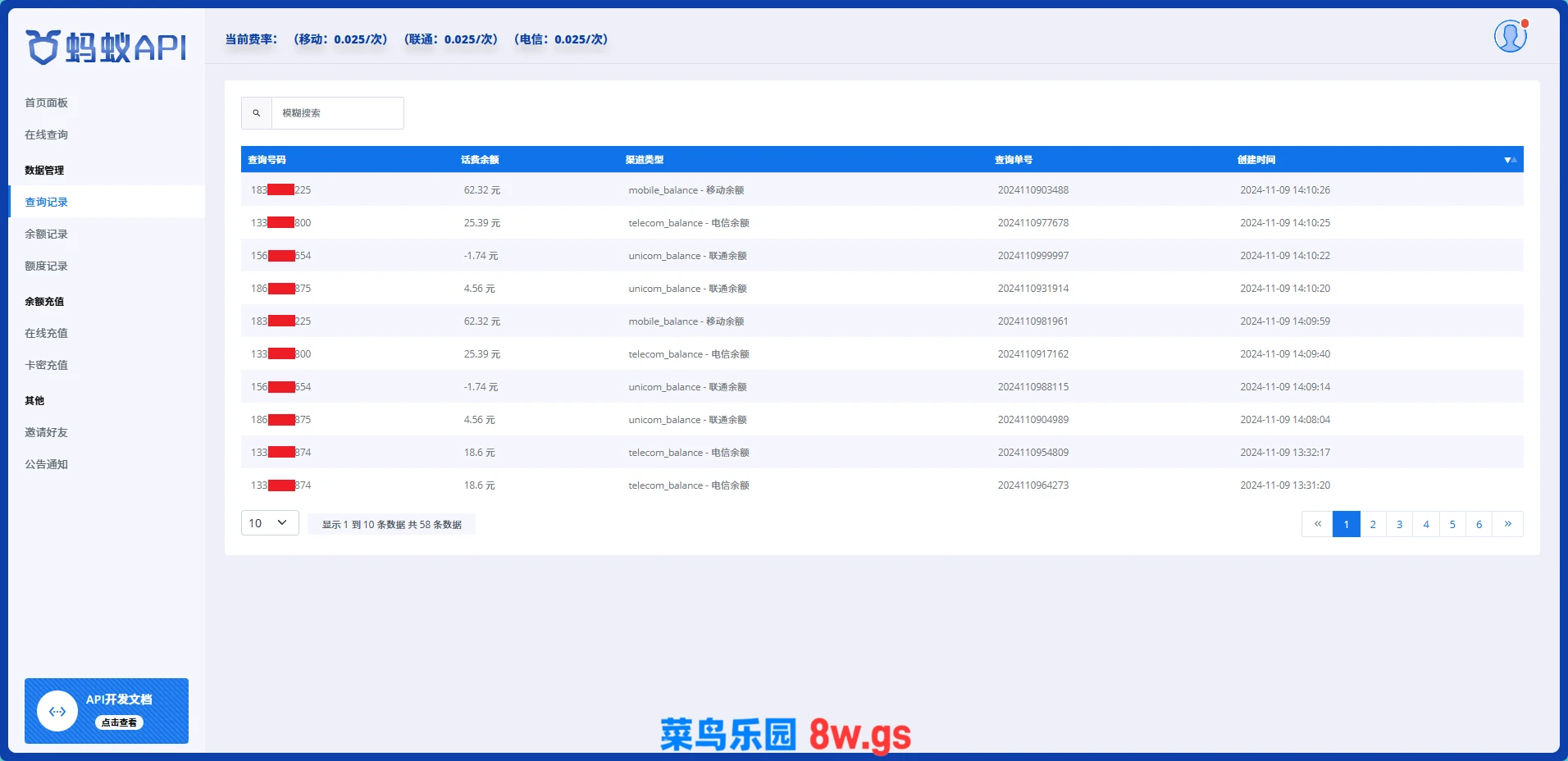 本套系统是用thinkphp6.0框架开发的,PHP版本需8.1以上,可查询手机号话费余额、归属地和运营商等信息,系统支持用户中心在线查询和通过API接口对接发起查询,用户余额充值是对接usdt接口或者通过后台生成卡密,源码全开源,支持懂技术的人二次开发~